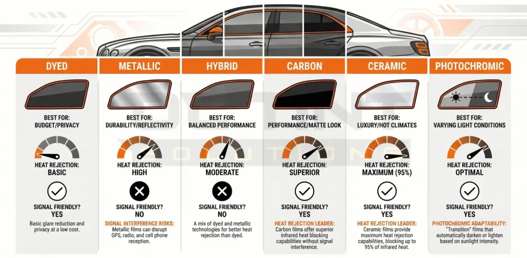 - Compare tint film types based on your climate and driving habits.
